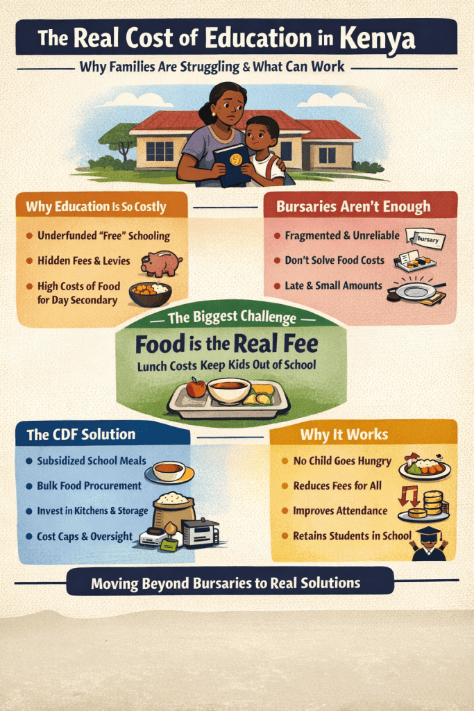 The cost of education crisis in Kenya is not abstract. It is lived daily by parents deciding whether their children will eat or learn. Bursaries, while well-intentioned, are no longer sufficient. The real pressure point — food — requires collective, system-level solutions.